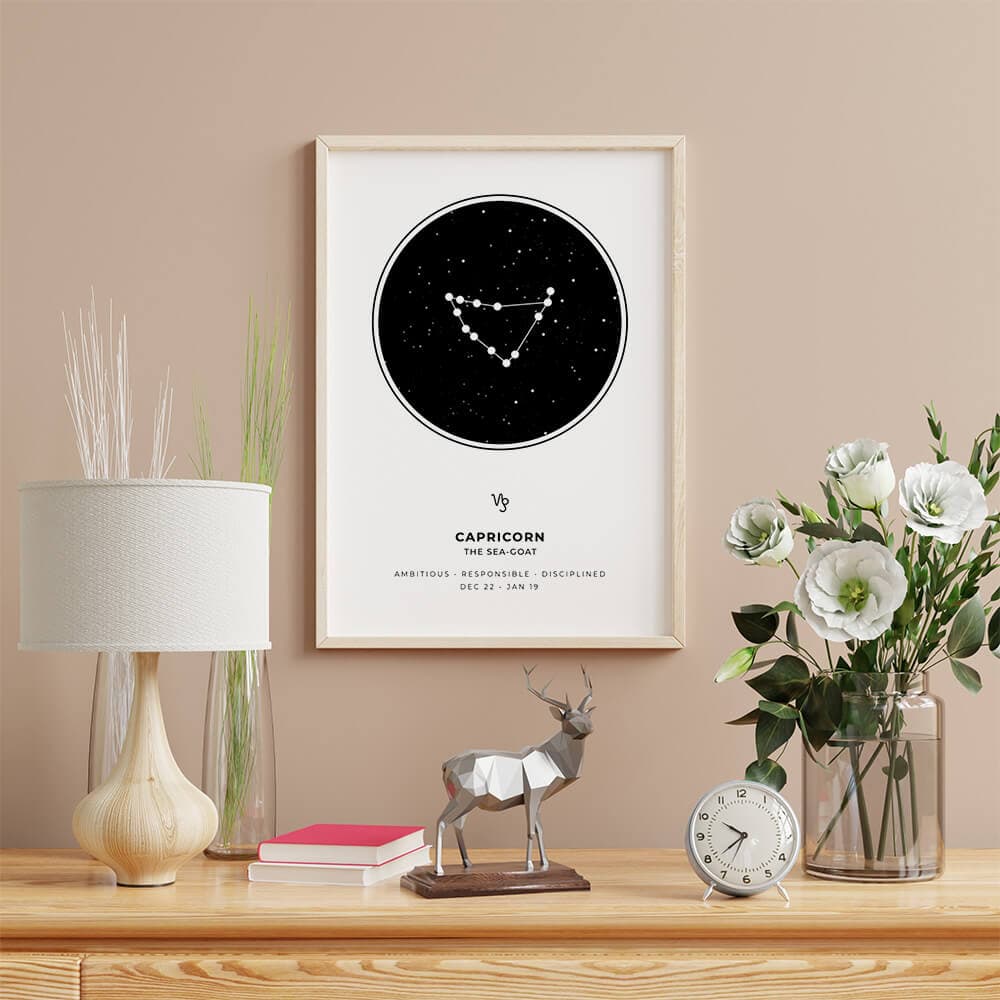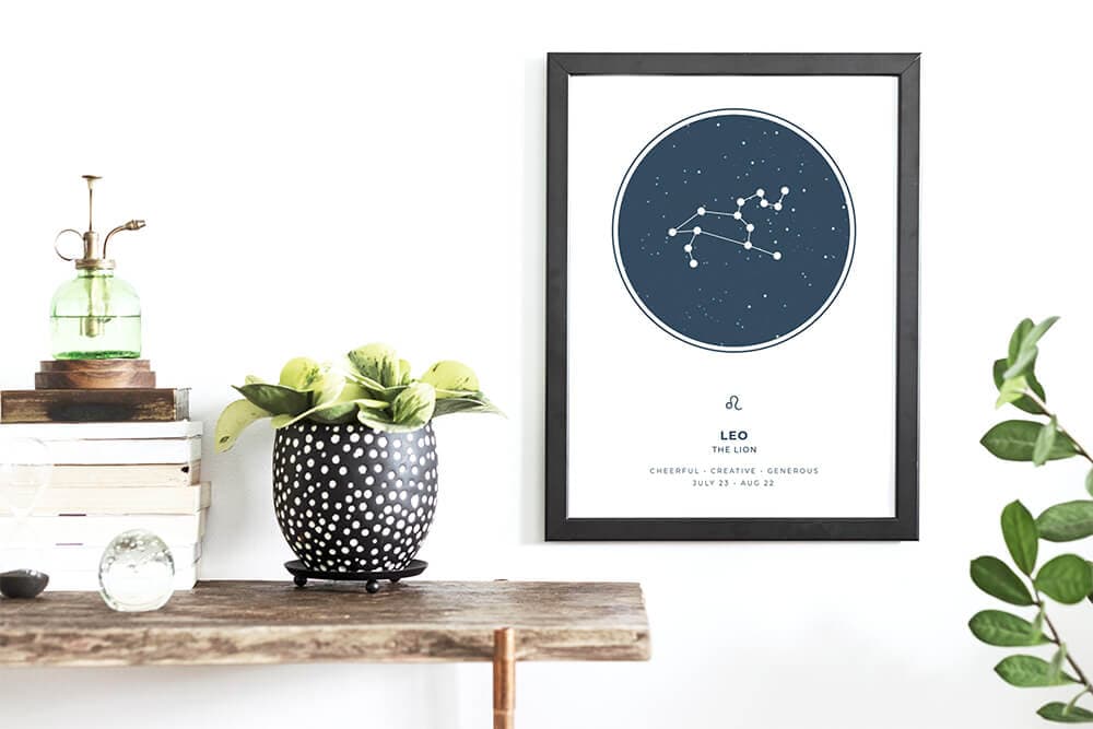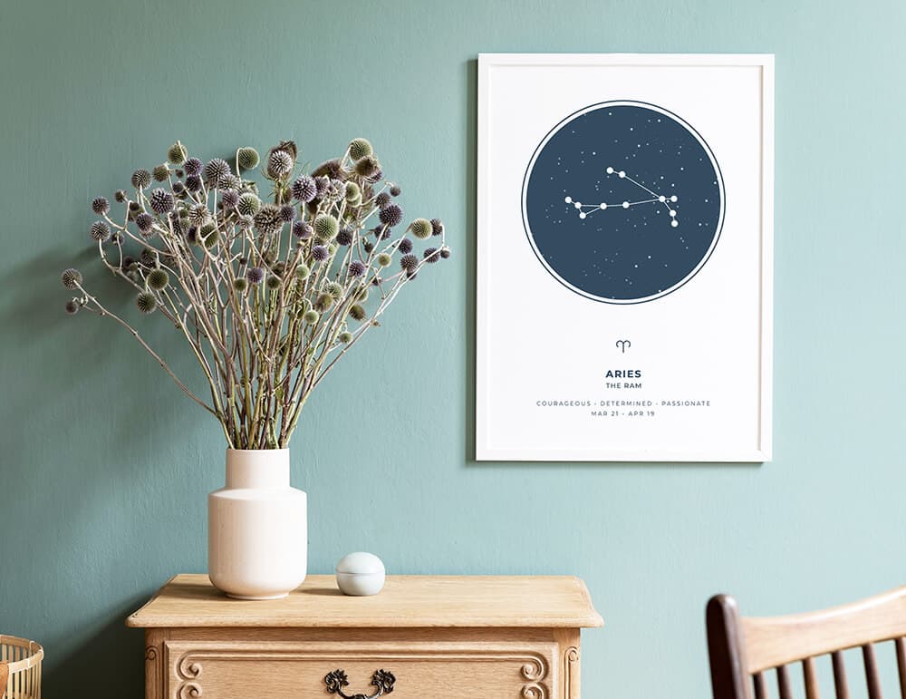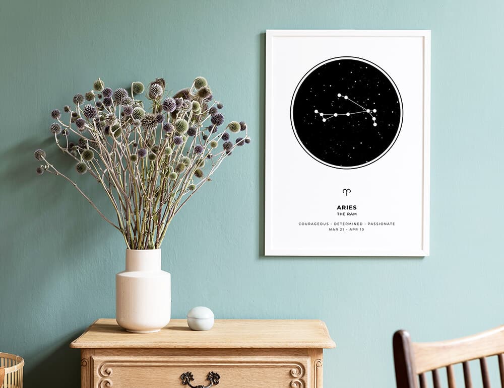 Create a customizable, one of a kind zodiac map for any of the zodiac constellations. Select the zodiac, pick your favorite styles and write a custom message for you or that special someone. Our wide-range of styles are bound to fit the theme of any room or home. An original and unique gift for anyone, or even yourself!
